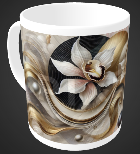 Sanft, edel, stilvoll. Diese Tasse bringt florale Eleganz in deinen Alltag – mit schimmerndem Blüten-Design und cremiger Farbkomposition.