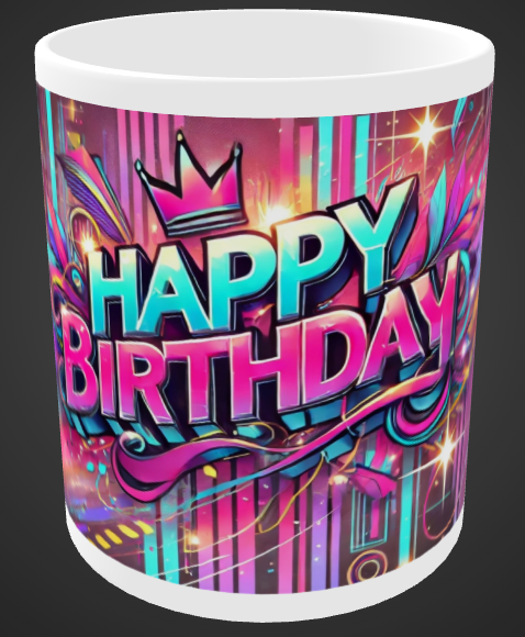 Bunt, laut, fröhlich – die perfekte Geburtstagstasse mit Pop-Art-Energie. Zum Verschenken oder selbst feiern – Hauptsache mit Konfetti!